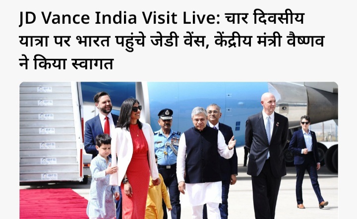 ▪️अमेरिकी उपराष्ट्रपति आज से भारत के चार दिवसीय दौरे पर, दिल्ली में अक्षरधाम मंदिर के दर्शन करेंगे, PM मोदी से मिलेंगे; जयपुर-आगरा घूमेंगे