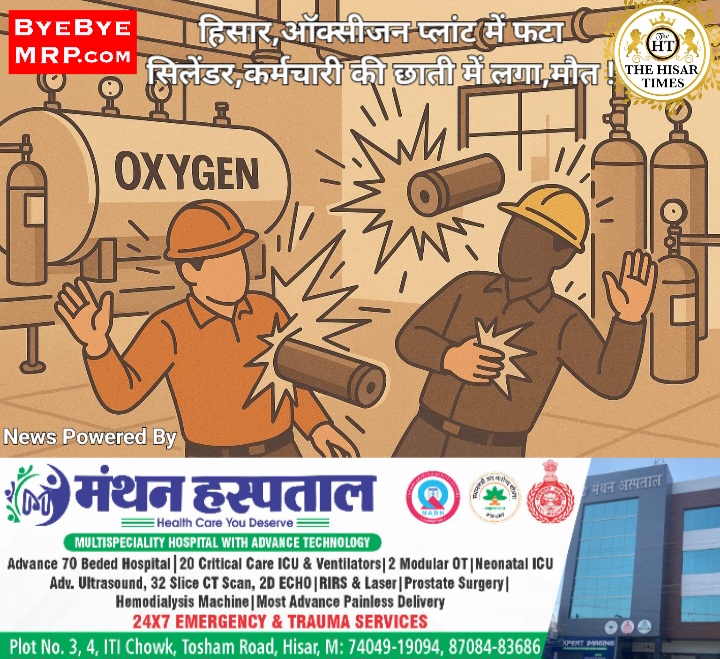 हिसार,ऑक्सीजन प्लांट में फटा सिलेंडर,कर्मचारी की छाती में लगा,मौत !