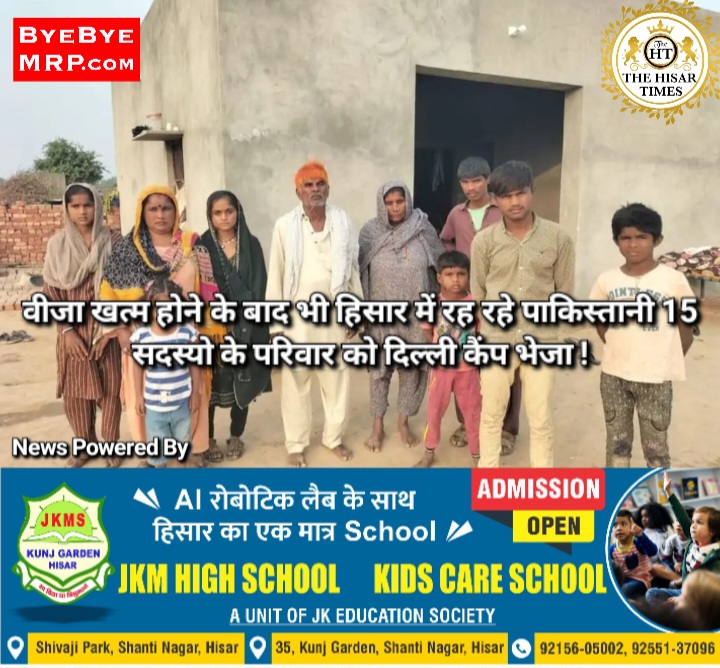 हिसार टाइम्स – हिसार के बालसमंद से एक पाकिस्तानी हिंदू परिवार को दिल्ली भेज दिया गया है। पहलगाम में हुए आतंकी हमले के बाद पुलिस ने यह कार्रवाई की है। इस परिवार में कुल 15 सदस्य हैं। परिवार पिछले 7 महीने से बालसमंद में रह रहा था। परिवार में 3 लड़कियां, 8 बच्चे, 3 महिलाएं और एक बुजुर्ग शामिल हैं। ये सभी पाकिस्तान के सिंध हैदराबाद से आए थे। परिवार 25 अगस्त 2024 से वीजा समाप्त होने के बाद भी यहीं रह रहा था। परिवार एक निजी अस्पताल की जमीन पर बने कमरे में रह रहा था।