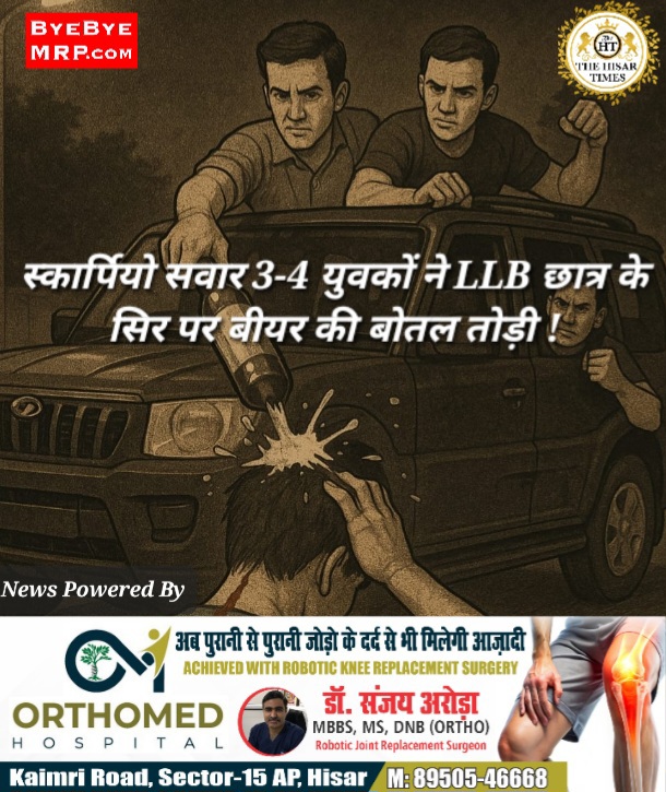 हिसार टाइम्स – हिसार रेलवे स्टेशन से खाना खाकर घर लौट रहे एलएलबी छात्र पर स्कॉर्पियो गाड़ी में सवार 3-4 युवकों ने बीयर की बोतल से हमला कर दिया। घायल छात्र को नागरिक अस्पताल में दाखिल करवाया गया है। सीआर लाॅ कॉलेज में पढ़ने वाले हिमांशु ने पुलिस को दिए बयान में बताया कि वह एलएलबी कर रहा है।