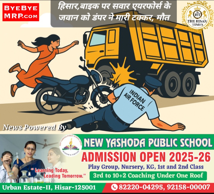 हिसार,बाइक पर सवार एयरफोर्स के जवान को डंपर ने मारी टक्कर, मौत !
