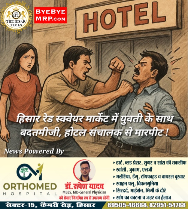 हिसार टाइम्स – हिसार के रेड स्क्वेयर मार्केट में कुछ युवकों ने होटल संचालक विकास के साथ मारपीट की। घायल नागरिक अस्पताल में उपचाराधीन है। घायल का आरोप है कि मुक्का लगने से उसके दो दांत टूट गए। एचटीएम थाना पुलिस ने इस संबंध में तीन नामजदों समेत अन्य के खिलाफ केस दर्ज कर लिया है। खरकड़ी गांव के विकास ने पुलिस को दी शिकायत में बताया कि उसका राजगुरु मार्केट में होटल है।