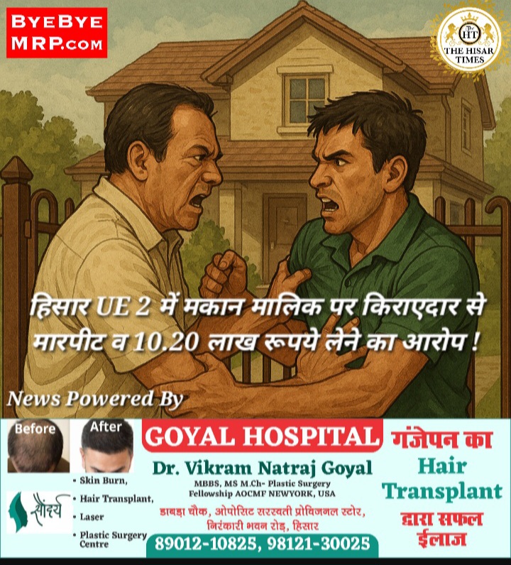 हिसार UE 2 में मकान मालिक पर किराएदार से मारपीट व 10.20 लाख रूपये लेने का आरोप !