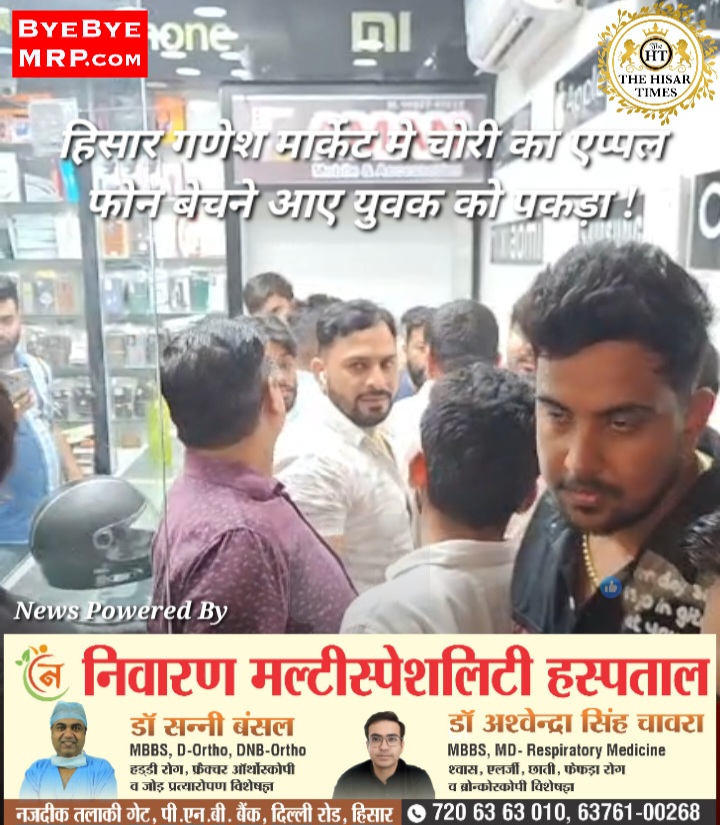 हिसार गणेश मार्केट मे चोरी का एप्पल फोन बेचने आए युवक को पकड़ा !