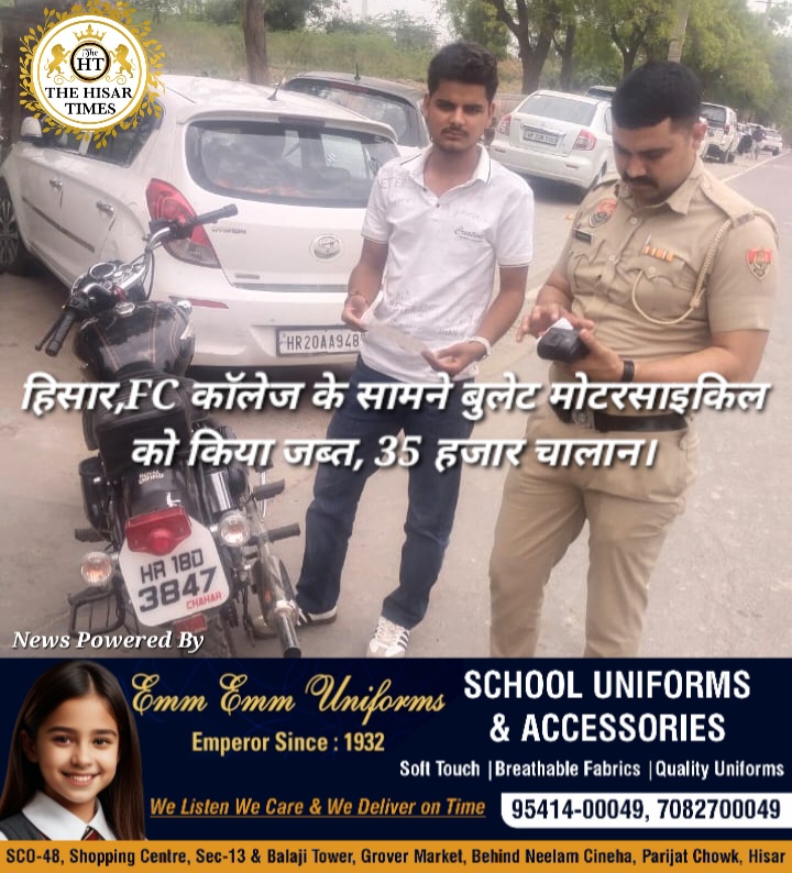 हिसार,FC कॉलेज के सामने बुलेट मोटरसाइकिल को किया जब्त, 35 हजार चालान।