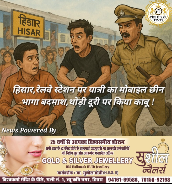 हिसार टाइम्स – हिसार रेलवे स्टेशन पर ट्रेन का इंतजार कर रहे एक यात्री का मोबाइल फोन छीनकर एक बदमाश भाग लिया। पुलिस कर्मियों ने कुछ दूरी पर उसे पकड़ लिया। सलेमगढ़ के राहुल ने पुलिस को शिकायत देकर कहा कि वह प्राइवेट नौकरी करता है। वीरवार को अपने गांव में जाने के लिए रेलवे स्टेशन के प्लेटफार्म नंबर 4-5 पर चाय की कैंटीन के नजदीक बैंच पर बैठकर फोन चला रहा था।