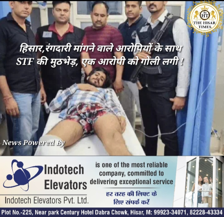 हिसार टाइम्स – हिसार के तलवंडी राणा में शराब ठेकेदार से रंगदारी मांगने के आरोपियों के साथ एसटीएफ की मुठभेड़ हुई। जवाबी फायरिंग में एक बदमाश के पांव में गोली लगी। उसे जिला नागरिक अस्पताल में दाखिला करवाया गया है। एसटीएफ ने मुठभेड़ के दौरान तीनों आरोपियों तलवंडी राणा निवासी मंदीप, नवीन व नवीन पकड़ लिया है। तीनों की उम्र 23 से 26 साल के बीच है। सूत्रों के मुताबिक ने पुलिस ने आरोपियों के पास से तीन-चार पिस्तौल व देसी कट्टे बरामद किए हैं।
