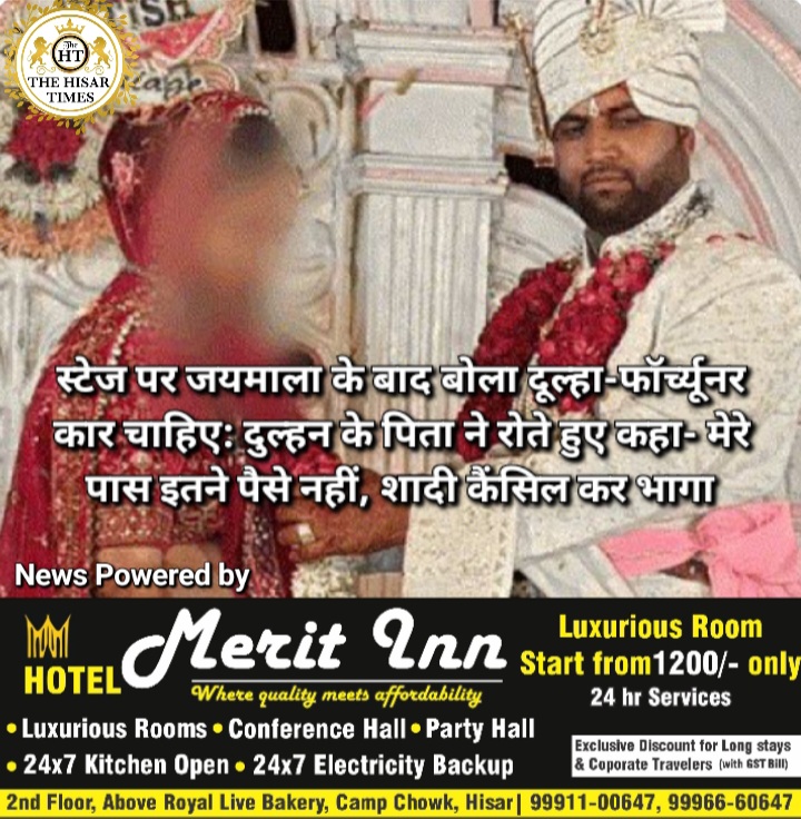 हिसार टाइम्स – राजस्थान के झुंझुनूं में एक हैरान कर देने वाला मामला सामने आया, यहां एक शादी में फेरों से पहले वरमाला के बाद दूल्हे ने दुल्हन के पिता से फॉर्च्यूनर कार की डिमांड की. दूल्हा बोला कि कार नहीं मिली तो शादी नहीं करूंगा.
