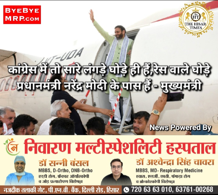 हिसार टाइम्स – मुख्यमंत्री नायब सिंह सैनी ने कहा कि कांग्रेस में तो सारे लंगड़े घोड़े ही हैं। बरात के घोड़े तो विधानसभा चुनाव में लोगों ने वापस भेज दिए। हरियाणा के लोगों ने देखा कि बरात के घोड़े कामयाब नहीं हैं। रेस वाले घोड़े प्रधानमंत्री नरेंद्र मोदी के पास हैं। उन्होंने कहा कि कांग्रेस … Continue reading कांग्रेस में तो सारे लंगड़े घोड़े ही हैं,रेस वाले घोड़े प्रधानमंत्री नरेंद्र मोदी के पास हैं – मुख्यमंत्री
