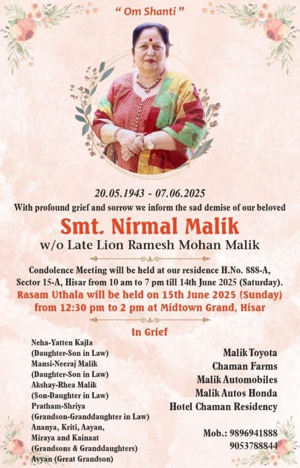 ………….शोक सन्देश……………..