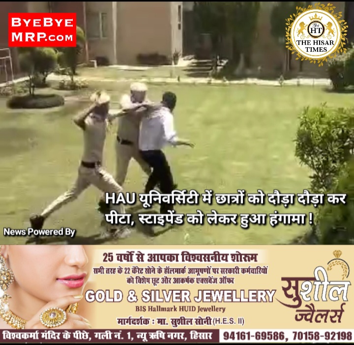 हिसार टाइम्स – HAU हिसार प्रशासन द्वारा एमएससी व पीएचडी स्टूडेंट्स को दिए जाने वाले स्टाइपेंड के नए बदलाव पर विवाद खड़ा हो गया। नए प्रावधान के खिलाफ हकृवि के विद्यार्थियों ने मंगलवार दोपहर कुलपति कार्यालय के बाहर धरना प्रदर्शन किया। यहां सुरक्षा कर्मचारियों के साथ बहस हो गई। थोड़ी ही देर में सुरक्षा कर्मचारियों ने विद्यार्थियों को दौड़ा-दौड़ाकर पीटा व उन्हें खदेड़ दिया।