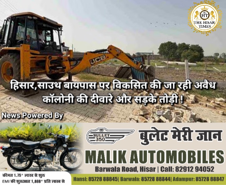 हिसार,साउथ बायपास पर विकसित की जा रही अवैध कॉलोनी की दीवारे और सड़के तोड़ी !