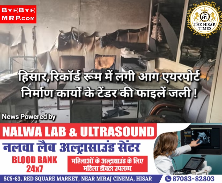 हिसार,रिकॉर्ड रूम में लगी आग एयरपोर्ट निर्माण कार्यों के टेंडर की फाइलें जली !