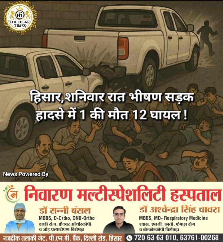 हिसार,शनिवार रात भीषण सड़क हादसे में 1 की मौत 12 घायल !