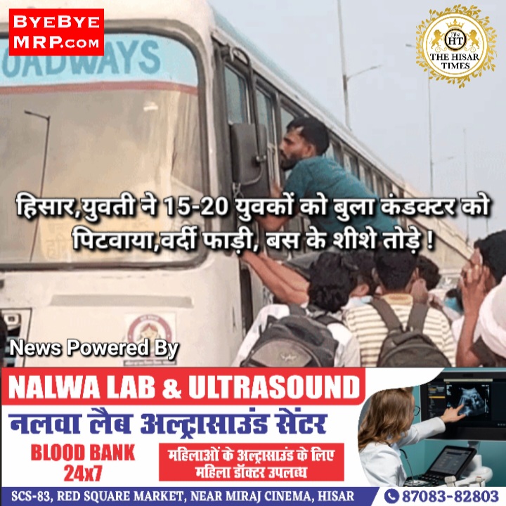 हिसार,युवती ने 15-20 युवकों को बुला कंडक्टर को पिटवाया,वर्दी फाड़ी, बस के शीशे तोड़े !