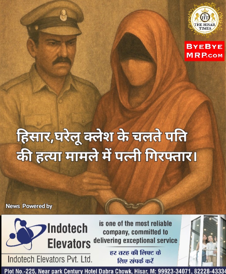 हिसार,घरेलू क्लेश के चलते पति की हत्या मामले में पत्नी गिरफ्तार।