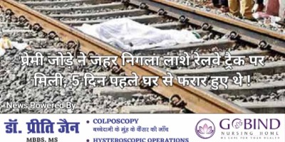 Crime, Top News प्रेमी जोड़े ने जहर निगला लाशे रेलवे ट्रैक पर मिली, 5 दिन पहले घर से फरार हुए थे ! June 22, 2025