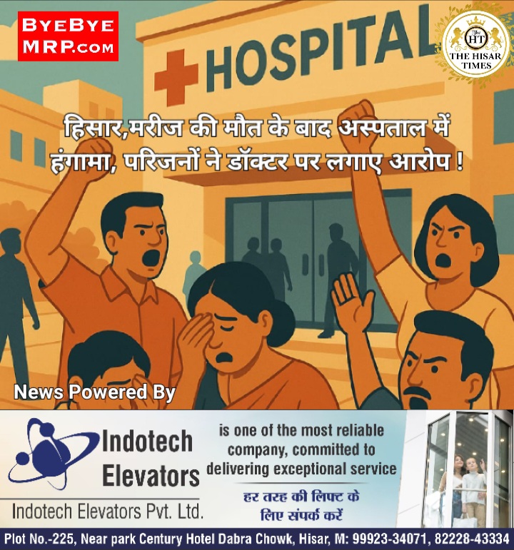 हिसार टाइम्स – हिसार शहर के डाबड़ा चौक के नजदीक एक निजी अस्पताल में रविवार को मरीज की मौत होने के बाद उपचार में लापरवाही का आरोप लगाकर परिजनों ने हंगामा किया। सूचना मिलने पर अर्बन एस्टेट थाना पुलिस मौके पर पहुंची। अस्पताल प्रशासन के साथ बातचीत में सहमति बनने पर परिजन शव लेकर रवाना हो गए।
