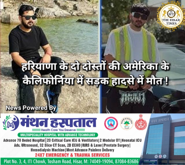हरियाणा के दो दोस्तों की अमेरिका के कैलिफोर्निया में सड़क हादसे में मौत !