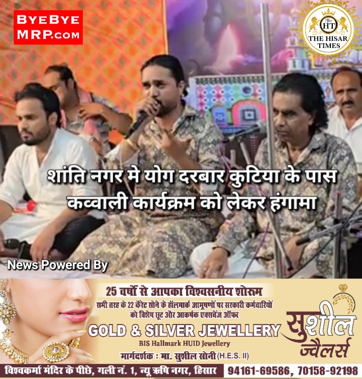 हिसार टाइम्स – हिसार के शांति नगर स्थित योग दरबार कुटिया के पास कव्वाली कार्यक्रम को बजरंग दल ने हिंदू विरोधी बताते हुए बंद करा दिया। इस दौरान काफी हंगामा हुआ।