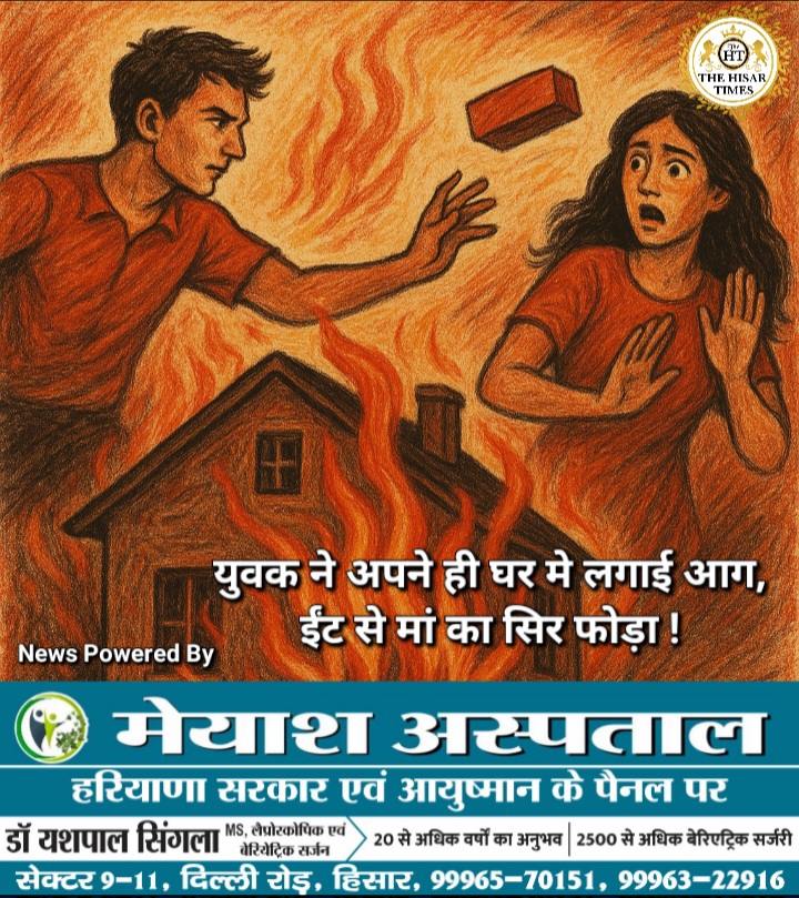 नोट – हिसार जिले में नौकरी संबंधित सूचनाओं, मुख्य समाचारों के लिए नीचे कॉलम पढ़े ! ————————————————————————– हिसार टाइम्स – हिसार के बारह क्वार्टर स्थित योग नगर में शुक्रवार रात एक युवक ने अपने ही घर में आग लगा दी। विरोध करने पर ईंट से हमला कर अपना अपनी मां का सिर फोड़ दिया और … Continue reading युवक ने अपने ही घर मे लगाई आग, ईंट से मां का सिर फोड़ा !