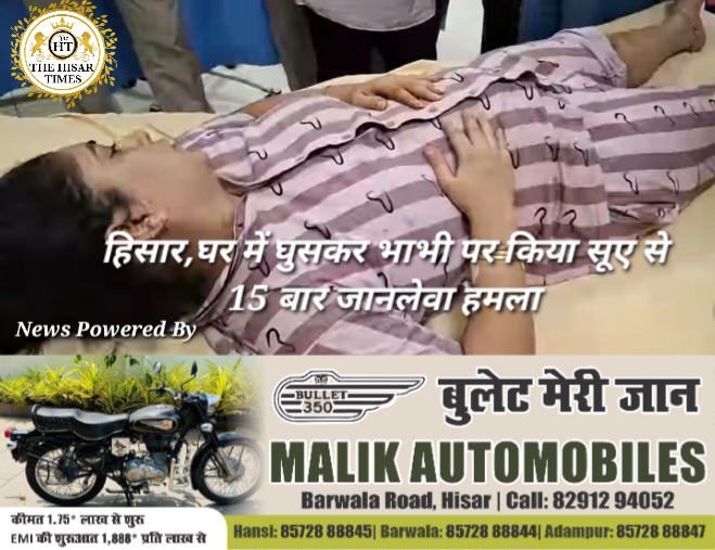 हिसार,घर में घुसकर भाभी पर किया सूए से 15 बार जानलेवा हमला,केस दर्ज,आरोपी देवर की तलाश जारी !