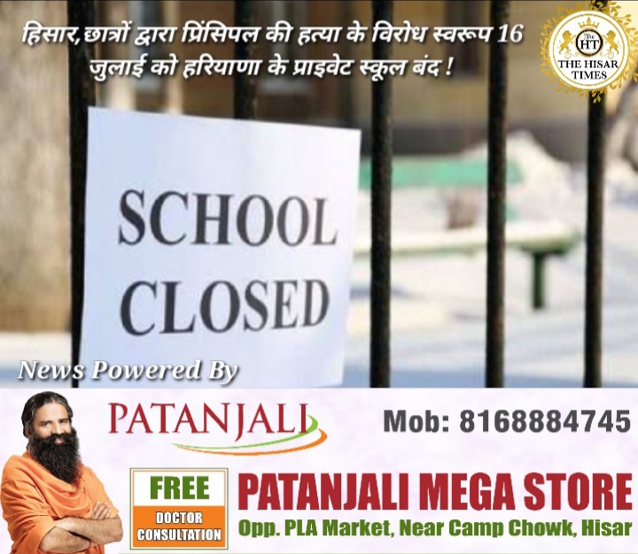 हिसार,छात्रों द्वारा प्रिंसिपल की हत्या के विरोध स्वरूप 16 जुलाई को हरियाणा के प्राइवेट स्कूल बंद !
