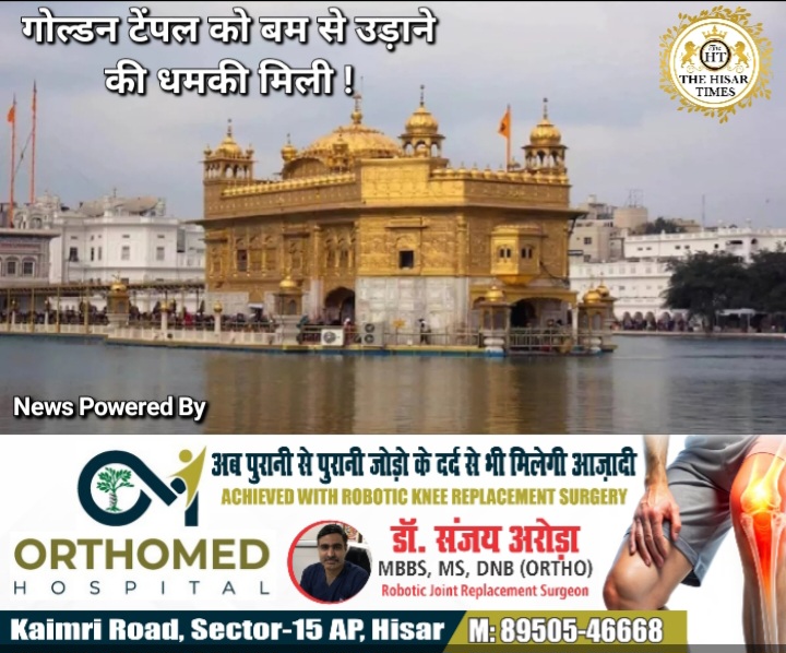 हिसार टाइम्स – पंजाब के अमृतसर में गोल्डन टेंपल को बम से उड़ाने की धमकी मिली है। यह धमकी सोमवार को ईमेल के जरिए आई। इसके बाद गोल्डन टेंपल के अंदर शिरोमणि गुरुद्वारा प्रबंधक कमेटी (SGPC) की टास्क फोर्स और बाहर पुलिस तैनात की गई है।SGPC के मेंबर कुलवंत सिंह मनन ने बताया कि ईमेल में गोल्डन टेंपल को सोमवार को मेल आई। इसमें RDX से उड़ाने की बात लिखी थी। उसमें समय भी लिखा था और सतर्क रहने को कहा गया है। ऐसा लगा रहा है जैसे डर का माहौल पैदा करने के लिए ऐसा किया गया है।