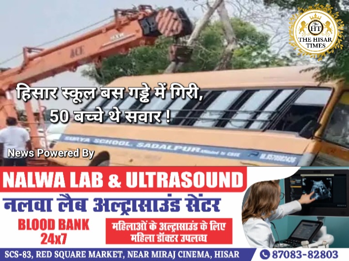 हिसार टाइम्स – हिसार में एक स्कूल बस हादसे का शिकार हो गई। सामने से आ रही रोडवेज बस के चालक ने अचानक स्टेयरिंग घुमाया, जिससे बचने के चक्कर में स्कूल बस सड़क से नीचे गड्ढे में उतर गई।चालक ने तेजी से ब्रेक लगाकर बस को पलटने से तो बचा लिया, लेकिन इस हादसे में कंडक्टर की तरफ का शीशा टूट गया और उसके पास बैठे कुछ बच्चों को चोटें आईं। घटना आदमपुर क्षेत्र के चक्की चौपटा के पास हुई।