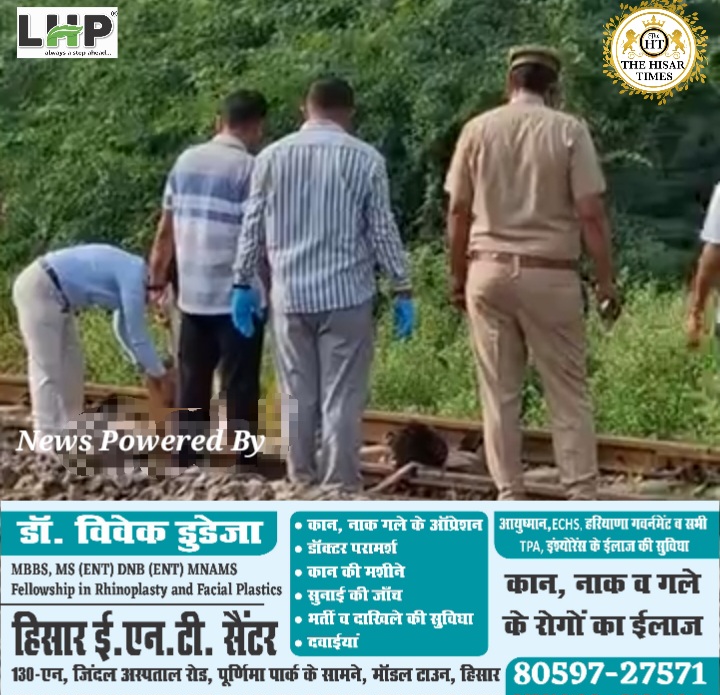 हिसार टाइम्स -हिसार में प्रेम नगर के पीछे रेलवे लाइन पर एक युवक की रेलवे ट्रैक पर डेड बॉडी मिली है। मृतक के हाथ बंधे हुए हैं, वहीं गले में कपड़ा लिपटा हुआ मिला है। सूचना मिलने पर डीएसपी कृष्ण कुमार और SHO जीआरपी विनोद कुमार पहुंचे। फिलहाल मृतक व्यक्ति के पहचान नहीं हो पाई हैजानकारी के अनुसार, जीआरपी को रविवार सुबह 4:30 बजे सूचना मिली कि रेलवे ट्रैक पर एक डेड बॉडी पड़ी हुई है।