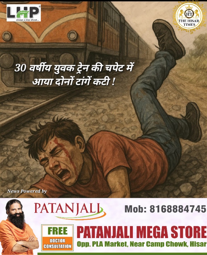 हिसार टाइम्स -हिसार डबल फाटक के पास सोमवार को एक दर्दनाक हादसा हो गया। करीब 30 वर्षीय युवक ट्रेन की चपेट में आ गया। हादसे में उसकी दोनों टांगें कट गईं। गंभीर हालत में युवक को तुरंत नागरिक अस्पताल पहुंचाया गया, जहां से प्राथमिक उपचार के बाद उसे अग्रोहा मेडिकल कॉलेज रेफर कर दिया गया। सूचना मिलने पर रेलवे थाना पुलिस मौके पर पहुंची और हादसे की जानकारी ली। पुलिस ने बताया कि युवक की पहचान की जा रही है। नागरिक अस्पताल में उससे जानकारी लेने की कोशिश की गई,