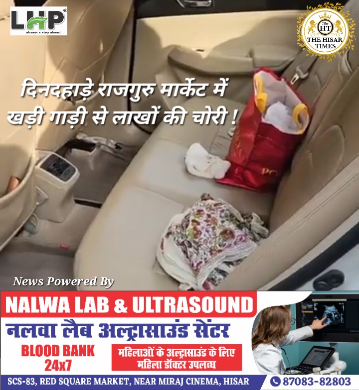 हिसार टाइम्स – हिसार की राजगुरु मार्केट में गाड़ी से अज्ञात व्यक्ति पर्स चोरी कर ले गया,इसमें मंगलसूत्र सहित 1.75 लाख कीमत के गहने व नकदी थी, पीड़िता सेक्टर 9- 11 वासी भारती की शिकायत पर सिटी थाना में केस दर्ज हुआ है, भारती ने बताया कि वह अपने पिता धर्मवीर के साथ दोपहर करीब 1:30 बजे राजगुरु मार्केट में खरीदारी के लिए पहुंची थी,