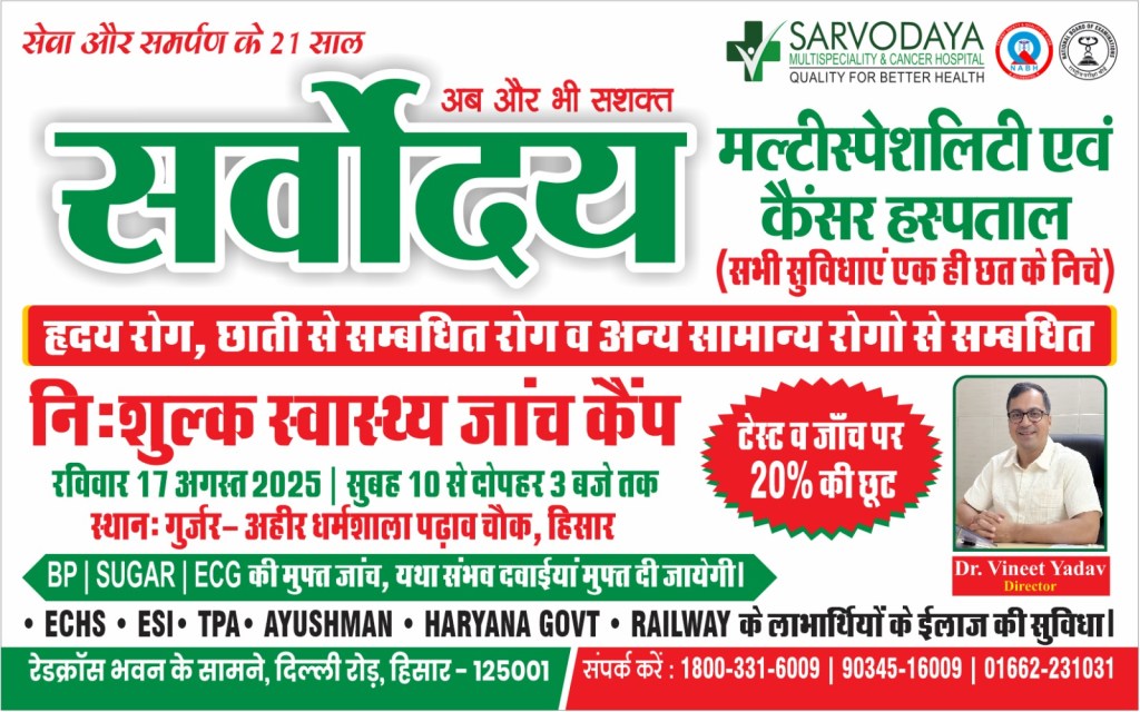 नोट – नीचे कॉलम में देखें > हिसार टाइम्स जॉब्स क्लासिफाइड > आज की बड़ी खबरें फटाफट !
