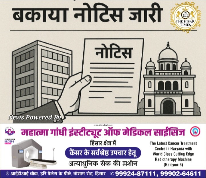 हिसार टाइम्स – हिसार शहर की प्रमुख तीन सामाजिक धर्मशालाएं भी अब नगर निगम के प्रॉपर्टी टैक्स डिफॉल्टरों की सूची में शामिल हो गई हैं। निगम प्रशासन ने अग्रसेन भवन, जाट धर्मशाला और पटेल नगर की पंचायती धर्मशाला को बकाया टैक्स को लेकर नोटिस जारी किए हैं। इनमें अग्रसेन भवन और जाट धर्मशाला पर एक-एक करोड़ रुपये से अधिक, जबकि पंचायती धर्मशाला पर करीब एक करोड़ रुपये टैक्स बकाया है।