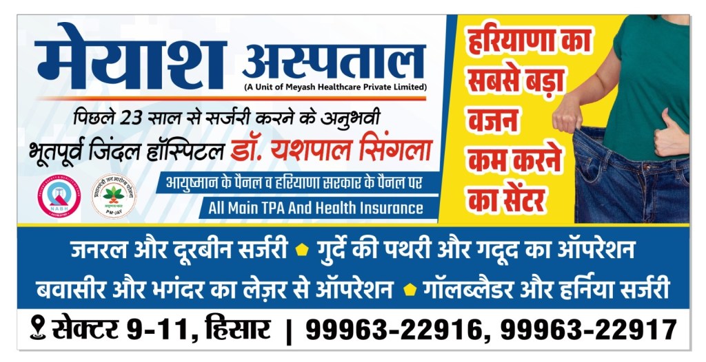 नोट – नीचे कॉलम में देखें > हिसार टाइम्स जॉब्स क्लासिफाइड > आज की बड़ी खबरें फटाbफट…
