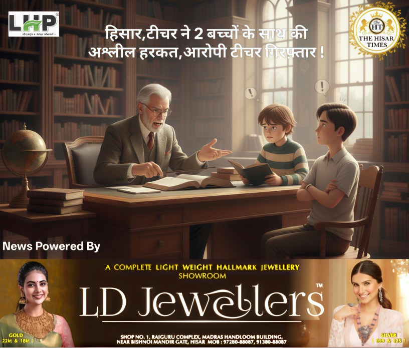 हिसार टाइम्स –हिसार शहर के एक पॉश एरिया में एक शिक्षक ने 13 साल के बच्चे के साथ यौन शोषण और 7 साल के बच्चे के साथ अश्लील हरकत की। इस मामले में सिविल लाइन थाना पुलिस ने वीरवार को 4 पॉक्सो एक्ट और विभिन्न धाराओं के तहत केस दर्ज किया। पुलिस ने शुक्रवार को आरोपी शिक्षक को गिरफ्तार किया है।