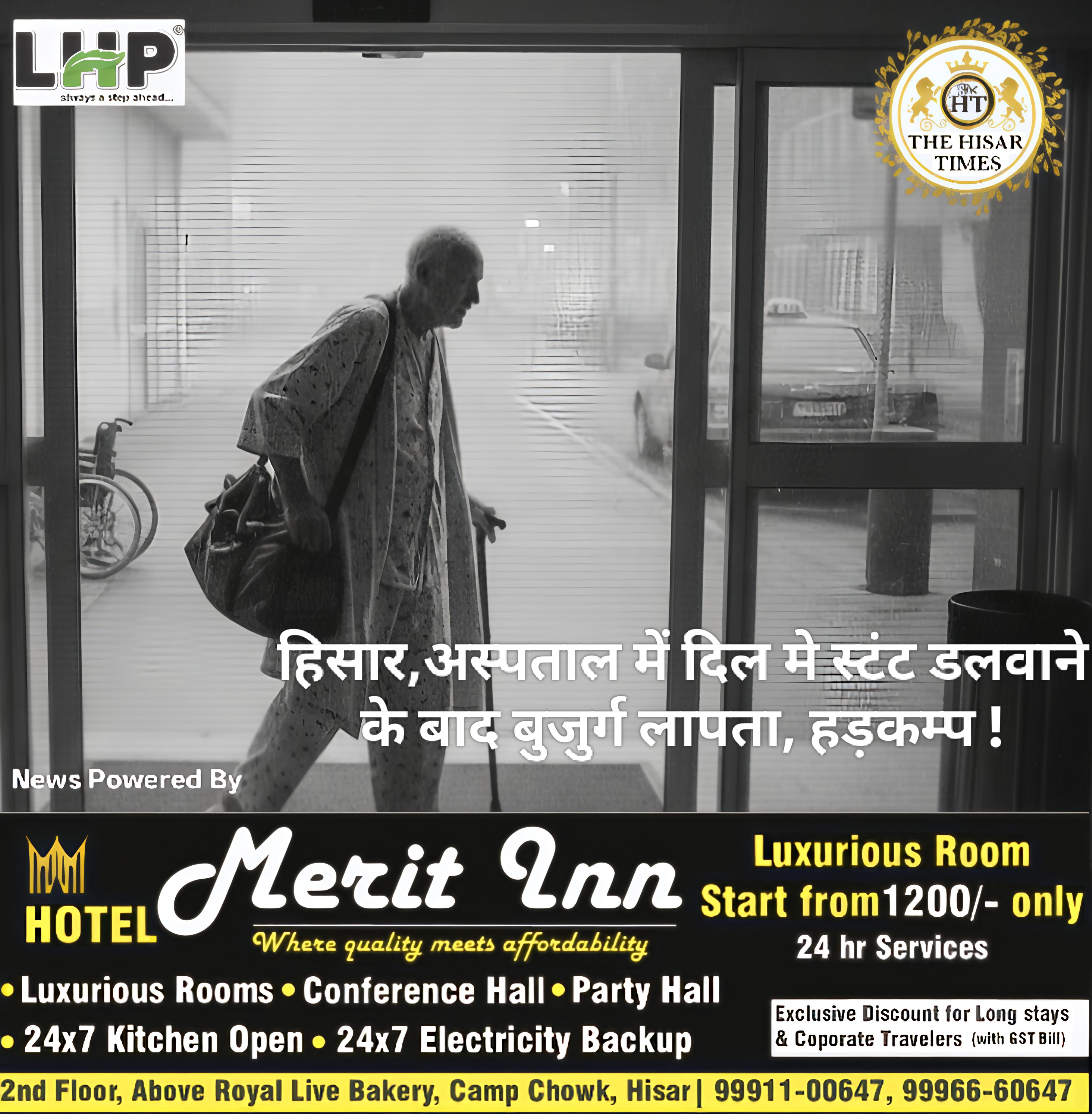 हिसार,अस्पताल में दिल मे स्टंट डलवाने के बाद बुजुर्ग लापता, हड़कम्प !