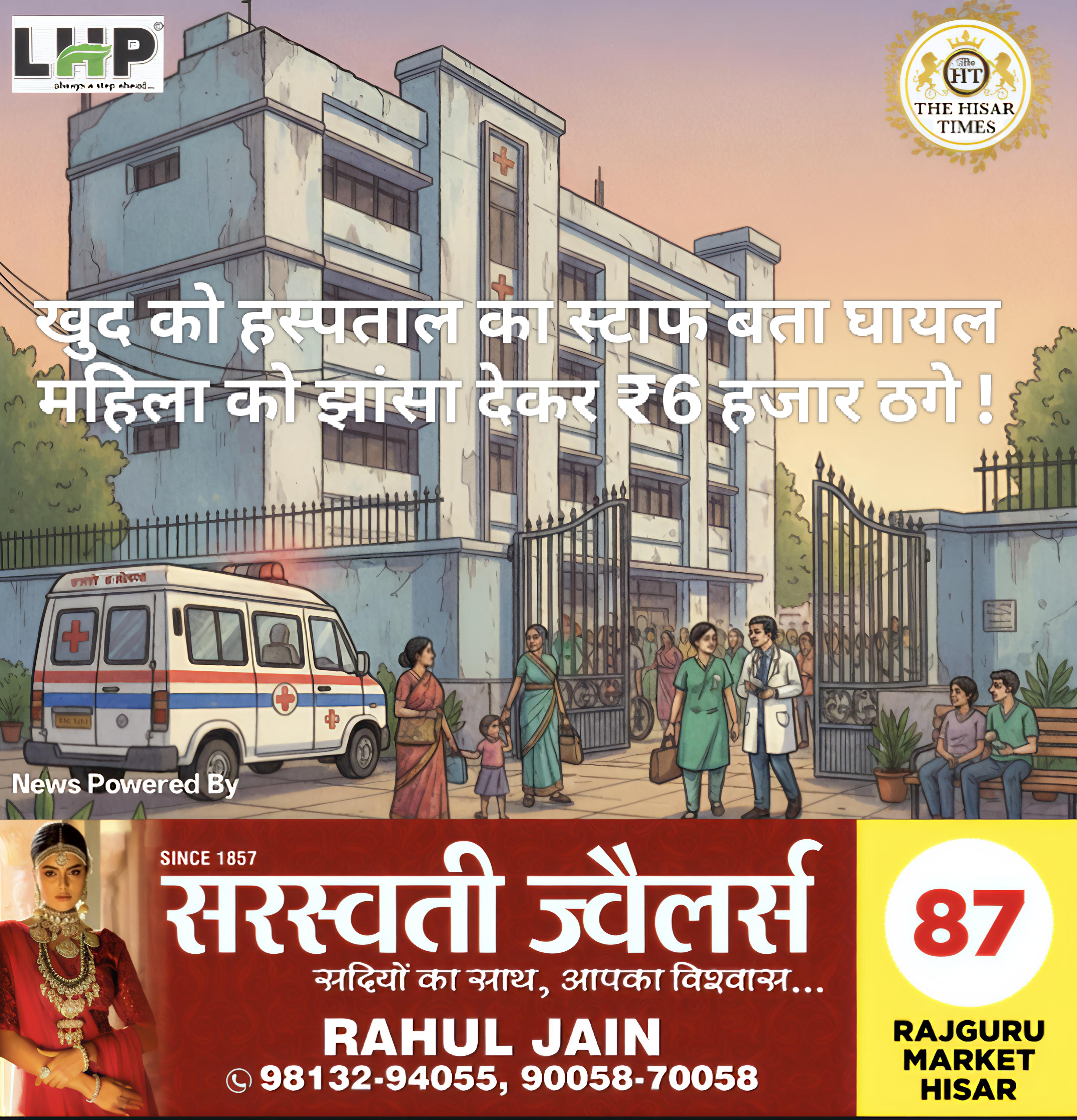 खुद को हस्पताल स्टाफ बता घायल महिला की एमएलआर व इलाज का झांसा देकर ₹6 हजार ठगे !