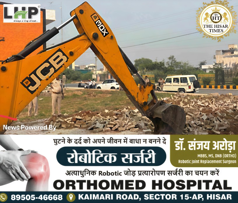 हिसार टाइम्स – जिला नगर योजनाकार विभाग ने वीरवार को कैमरी रोड पर विकसित की जा रही तीन अवैध कॉलोनियों में निर्माण को तोड़ा गया। कार्रवाई की। इस दौरान मौके पर भारी पुलिस बल तैनात रहा। जिला नगर योजनाकार विभाग को सूचना मिली थी कि कैमरी रोड पर भासी कॉम्प्लेक्स, श्री लक्ष्मी नगर और मिलन मार्केट नाम से कॉलोनियां विकसित की जा रही हैं। कॉलोनाइजर की तरफ से कॉलोनियों में इंटरलॉकिंग व कच्चा रोड,चहारदीवारी और नींव भरने का काम किया जा रहा है।
