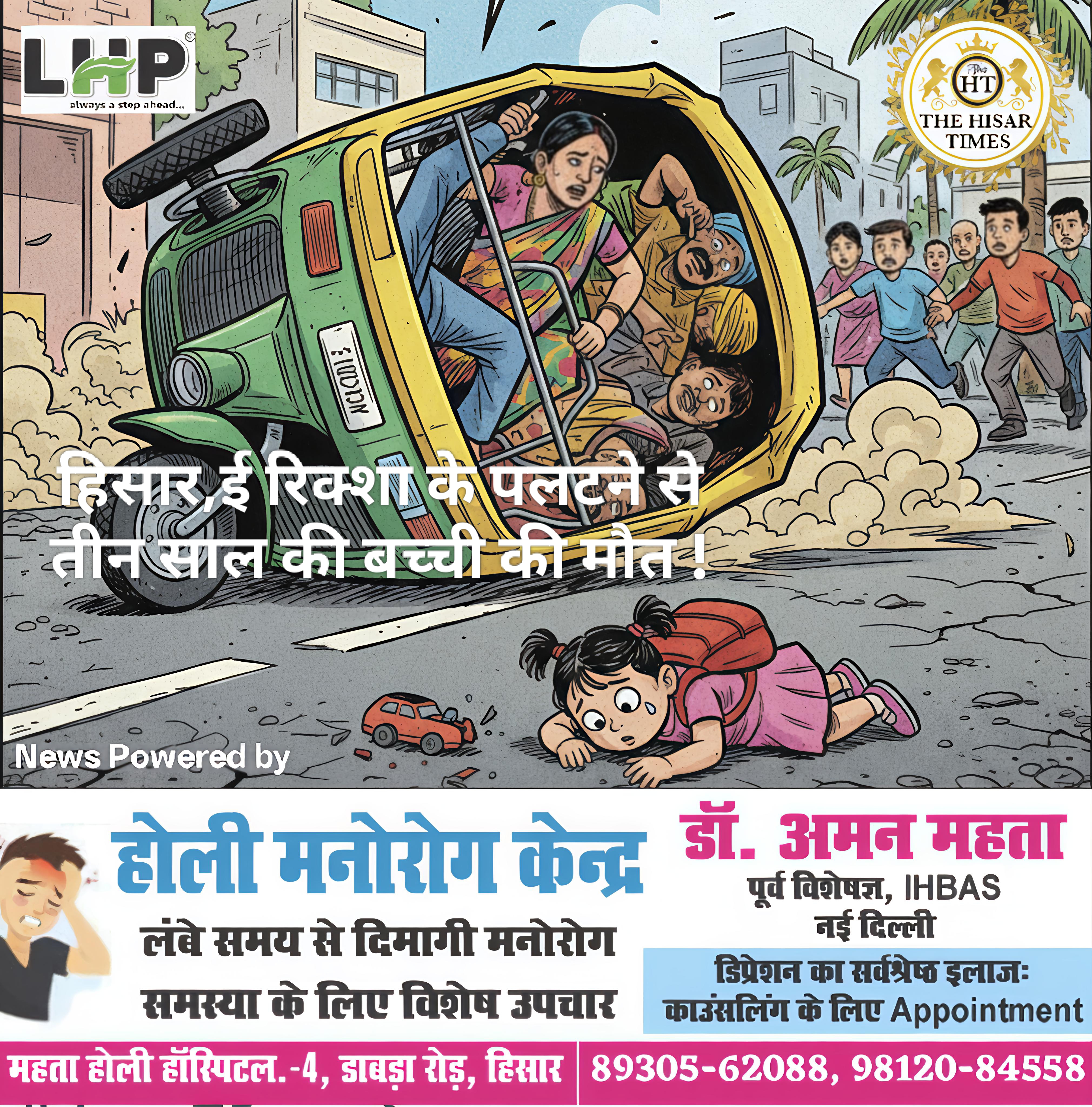 हिसार,ई रिक्शा के पलटने से तीन साल की बच्ची की मौत !