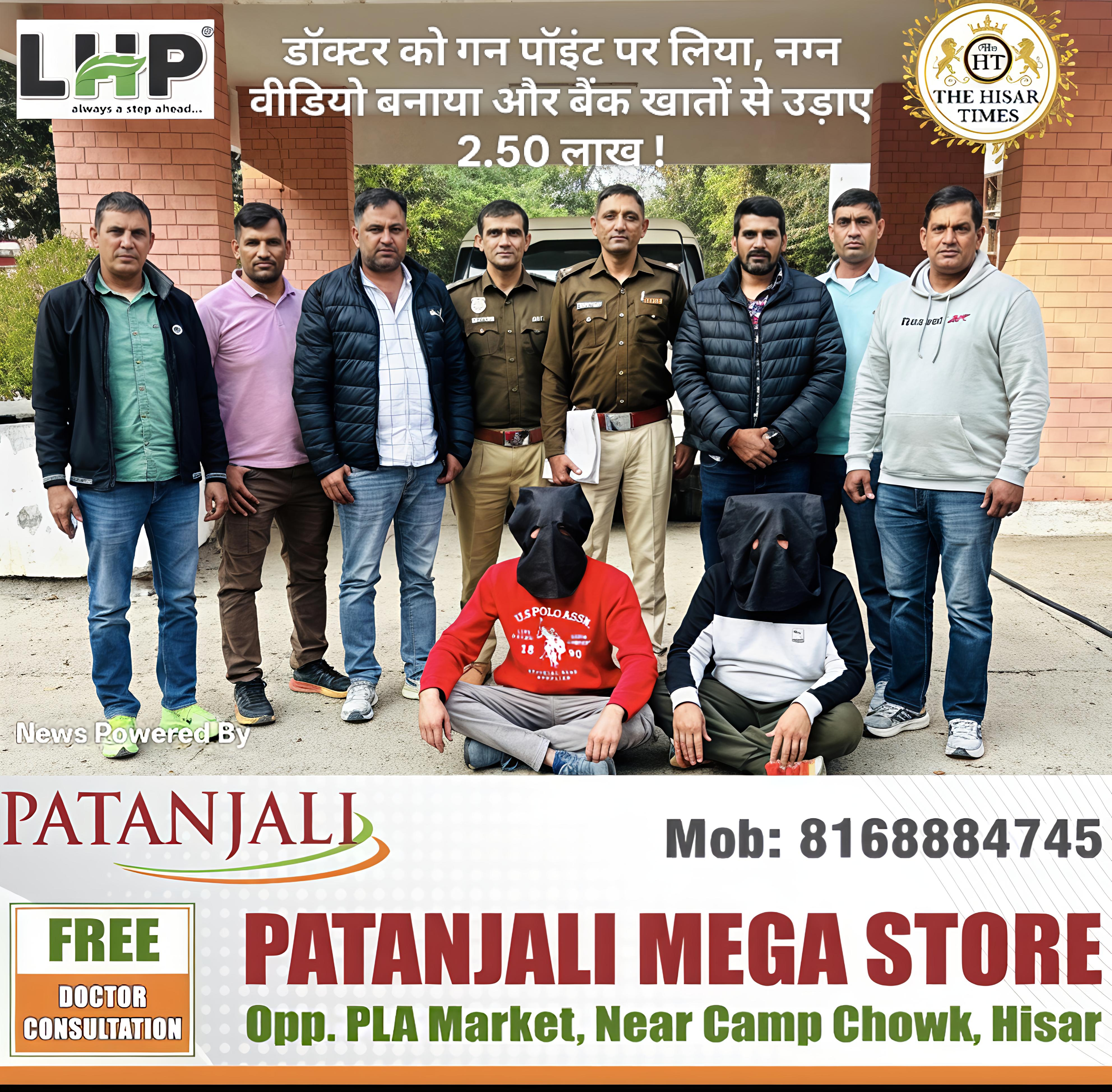 नोट – नीचे कॉलम में देखें > हिसार टाइम्स जॉब्स क्लासिफाइड > आज की बड़ी खबरें फटा फट… ➖➖➖➖➖➖➖➖➖➖➖➖➖➖ ◾हिसार में फर्जी साइबर अफसर बनकर डाका हिसार टाइम्स -हिसार पुलिस ने साइबर ठगी और लूटपाट के एक सनसनीखेज मामले का पर्दाफाश करते हुए दो शातिर अपराधियों को गिरफ्तार किया है। ये बदमाश खुद को साइबर … Continue reading डॉक्टर को गन पॉइंट पर लिया, नग्न वीडियो बनाया और बैंक खातों से उड़ाए 2.50 लाख !