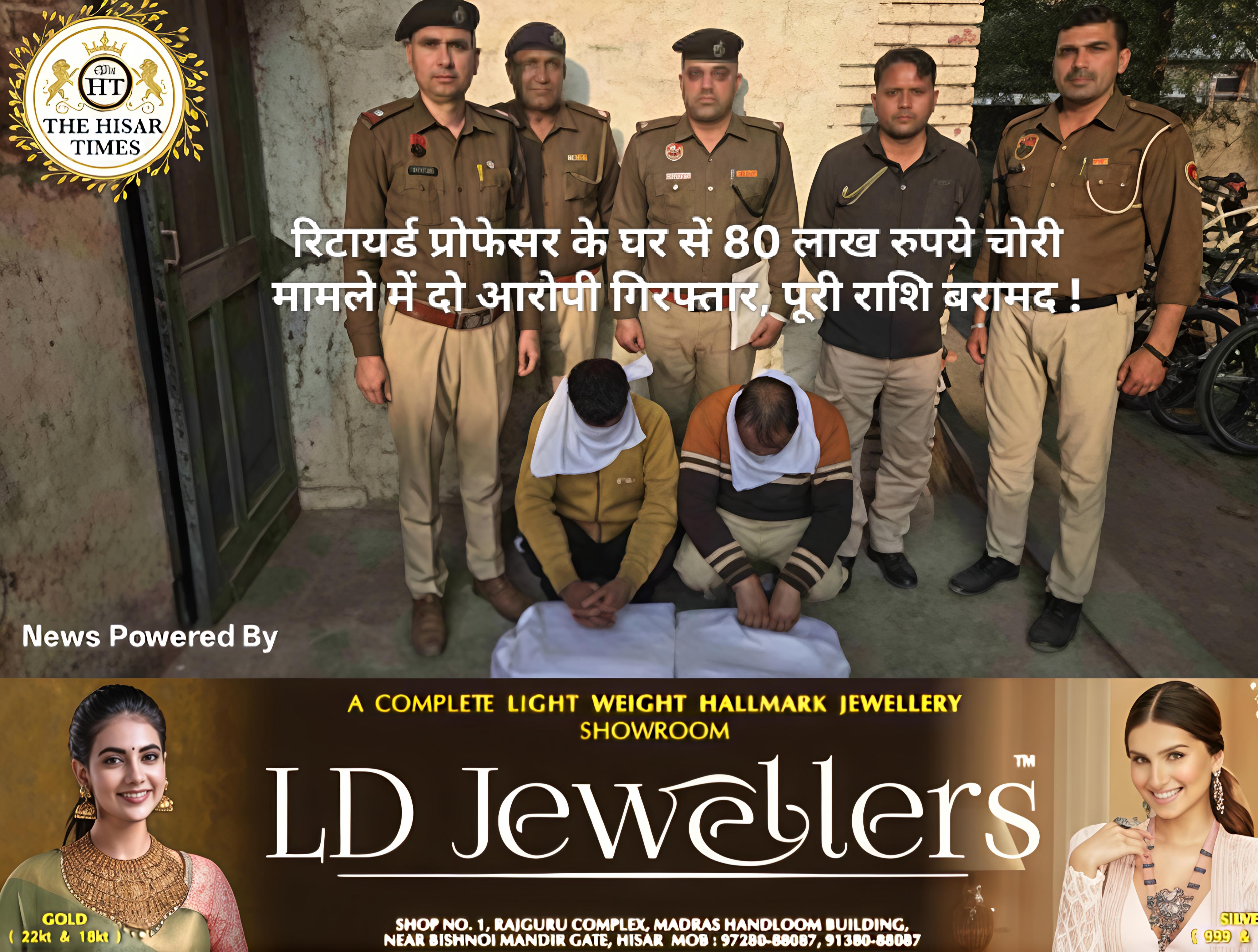 हिसार,प्रोफेसर के घर पर खाना देने वालो द्वारा 80 लाख रुपये चोरी मामले में दो गिरफ्तार !