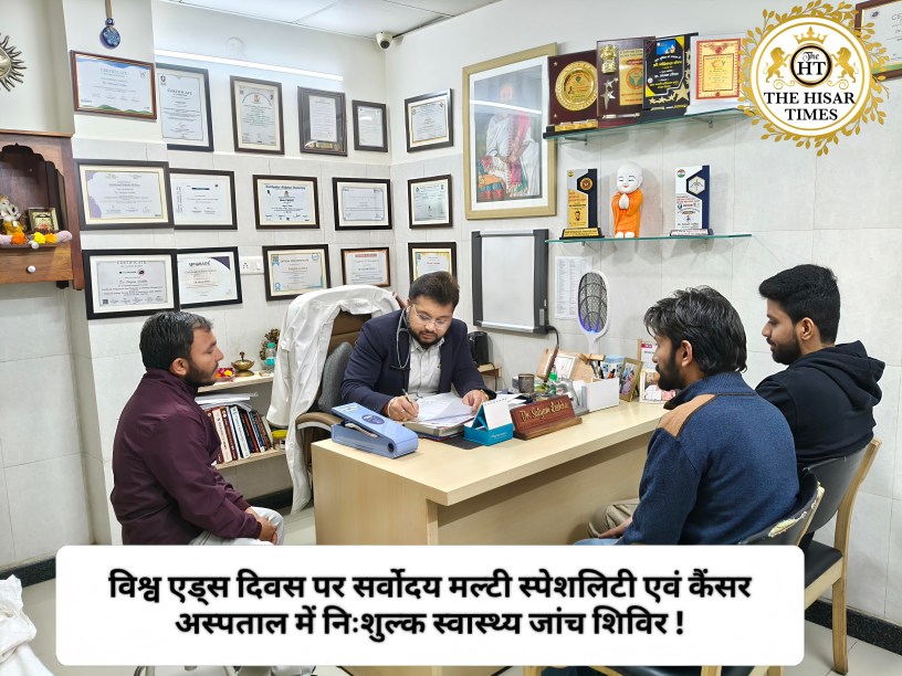 हिसार टाइम्स – विश्व एड्स दिवस के उपलक्ष्य में सर्वोदय मल्टी स्पेशलिटी एवं कैंसर अस्पताल में एक निःशुल्क स्वास्थ्य जांच शिविर का आयोजन किया गया, जिसमें OPD पूर्णतः निःशुल्क रखी गई एवं सभी प्रकार की जांचों पर 20% की विशेष छूट दी गई। इस शिविर में 100 से अधिक मरीजों ने स्वास्थ्य सेवाओं का लाभ उठाया।