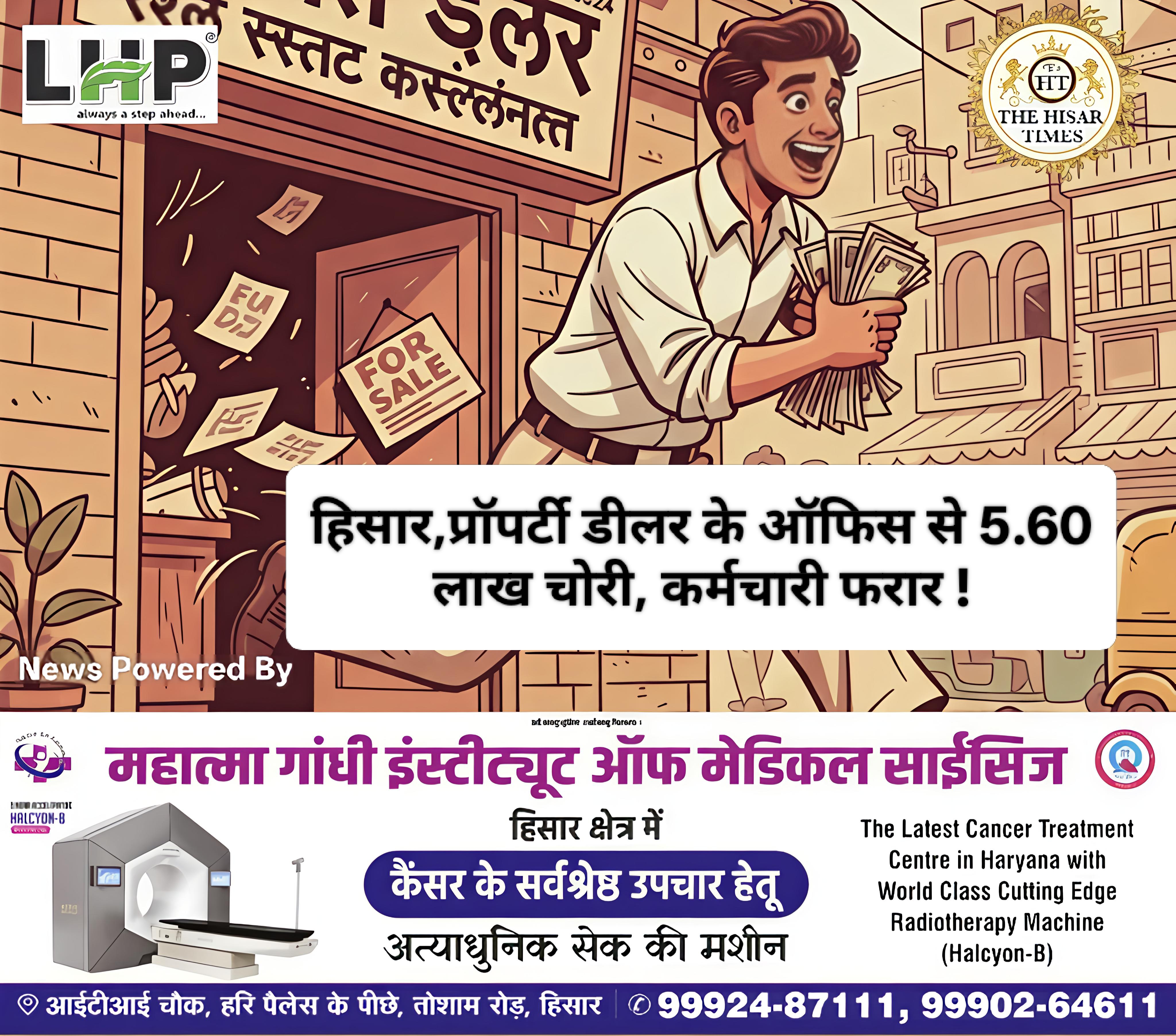 हिसार,प्रॉपर्टी डीलर के ऑफिस से 5.60 लाख चोरी, कर्मचारी फरार !