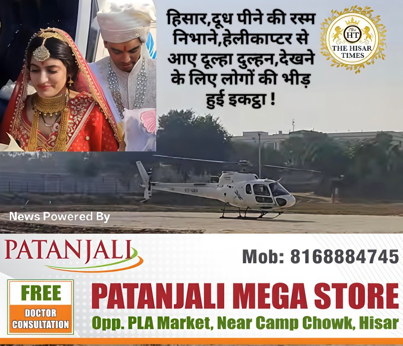 ◾हेलीकॉप्टर से दुल्हन लेकर पनिहार गांव पहुंचा दूल्हा