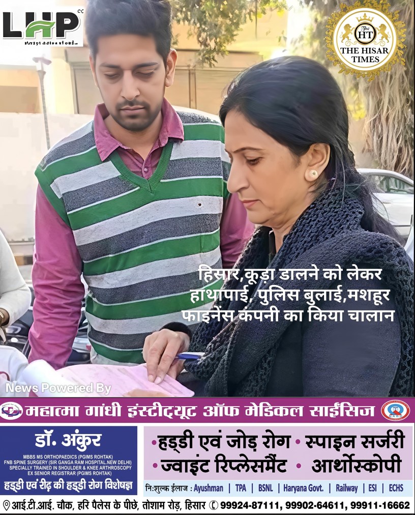 हिसार टाइम्स – नगर निगम कर्मचारियों ने बुधवार को एक निजी फाइनेंस कंपनी के स्टाफ को खुले में कचरा डालने से रोका तो उन्होंने निगमकर्मियों से दुर्व्यवहार किया। इस पर निगमकर्मियों को मौके पर पुलिस बुलानी पड़ी। पुलिस की मौजूदगी में कंपनी का चालान किया गया। हालांकि कंपनी के कर्मचारी बाद में निगम कार्यालय पहुंचे और माफी मांगी।