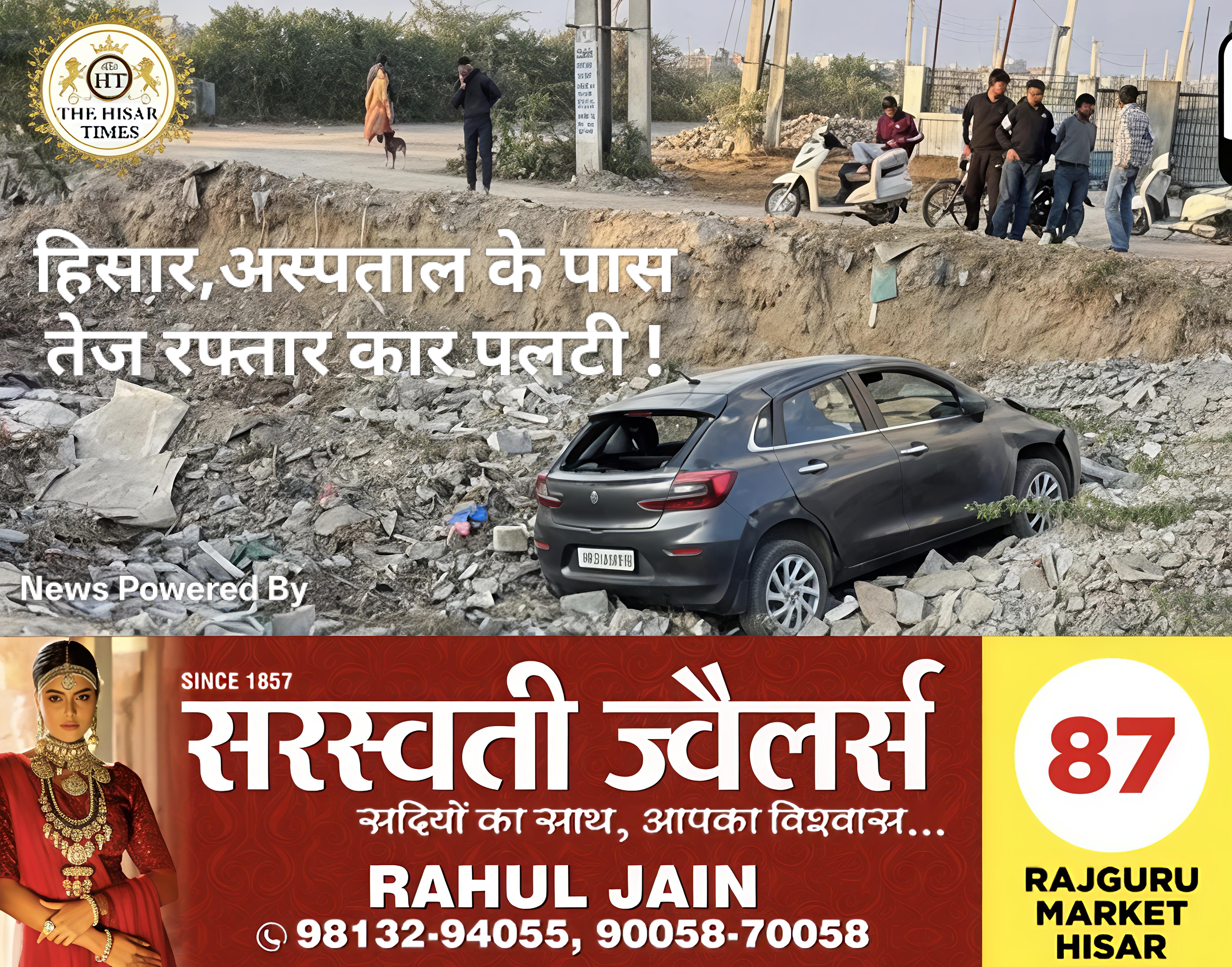 हिसार,अस्पताल के पास तेज रफ्तार कार पलटी !