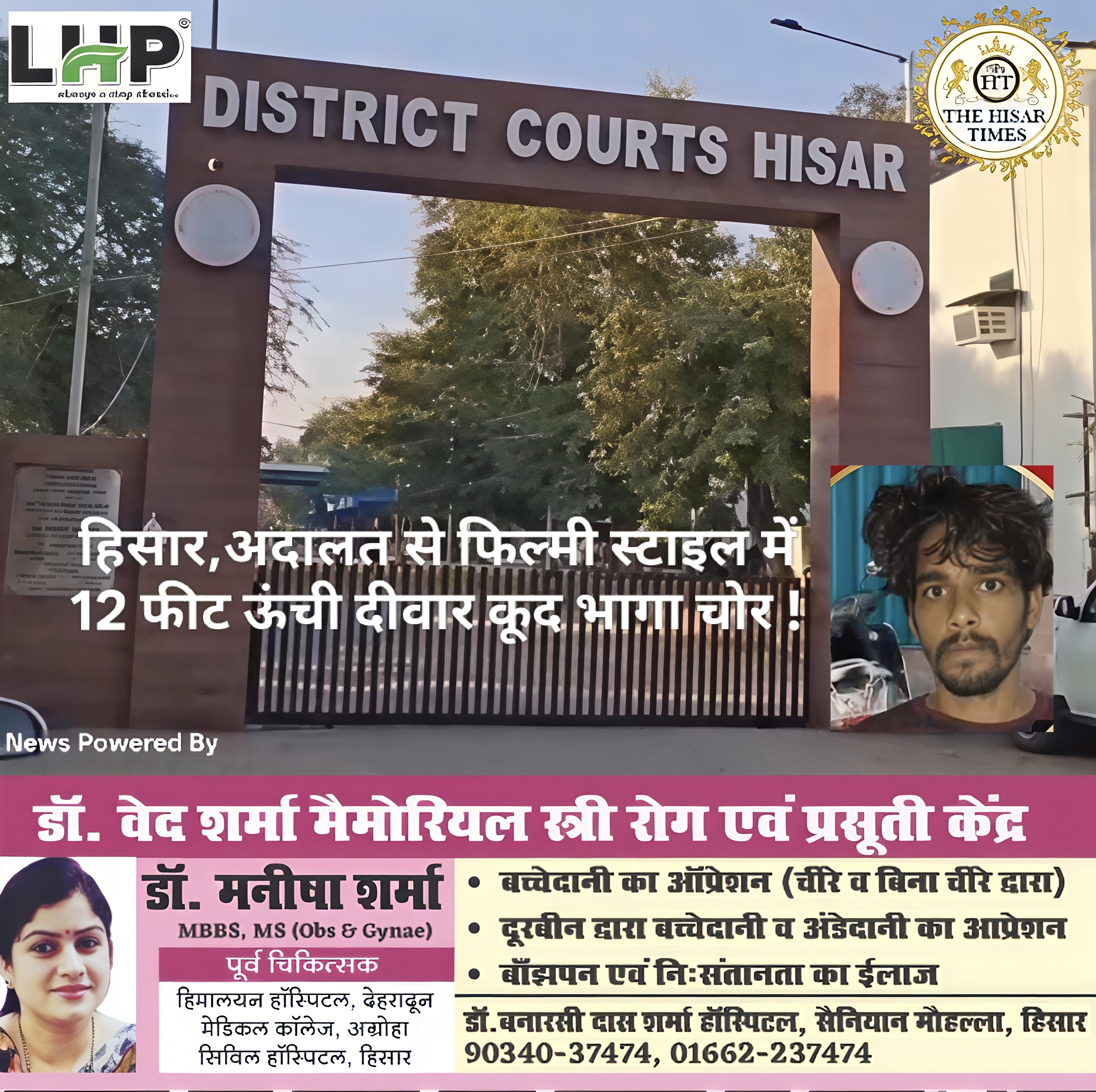 हिसार,अदालत से फिल्मी स्टाइल में 12 फीट ऊंची दीवार कूद भागा चोर !