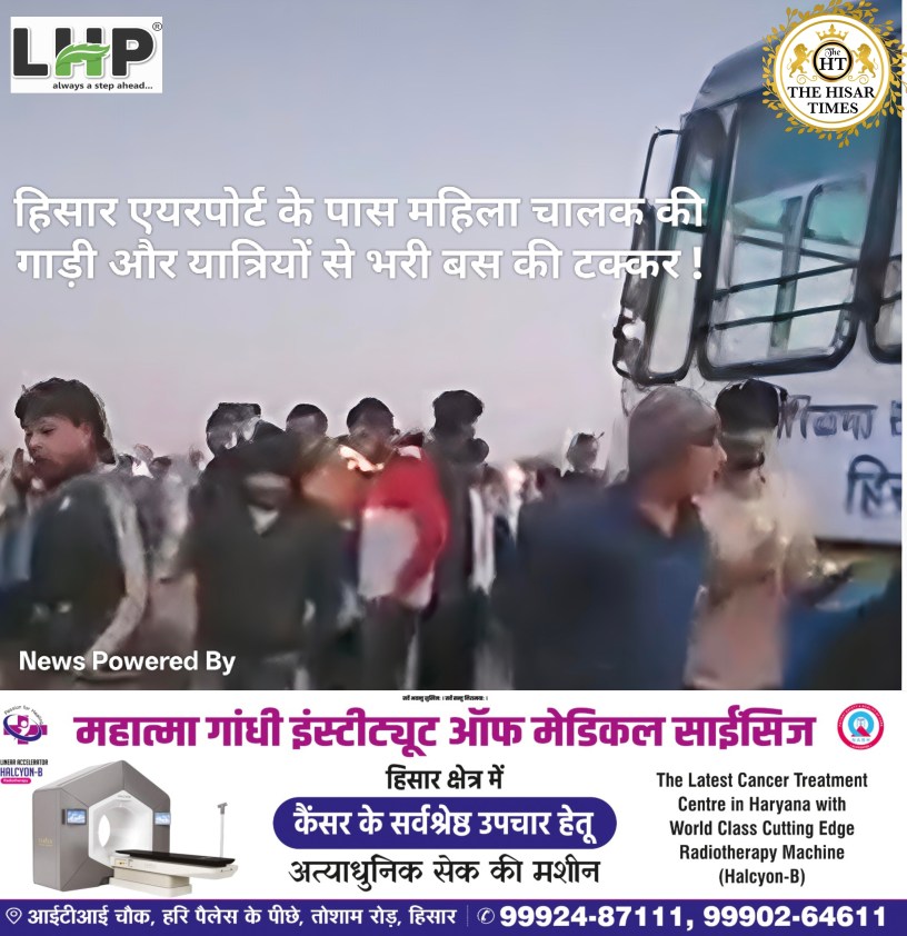 ◾हिसार में कार को बस ने मारी टक्कर : मची चीख पुकार, हिसार एयरपोर्ट के पास हादसा