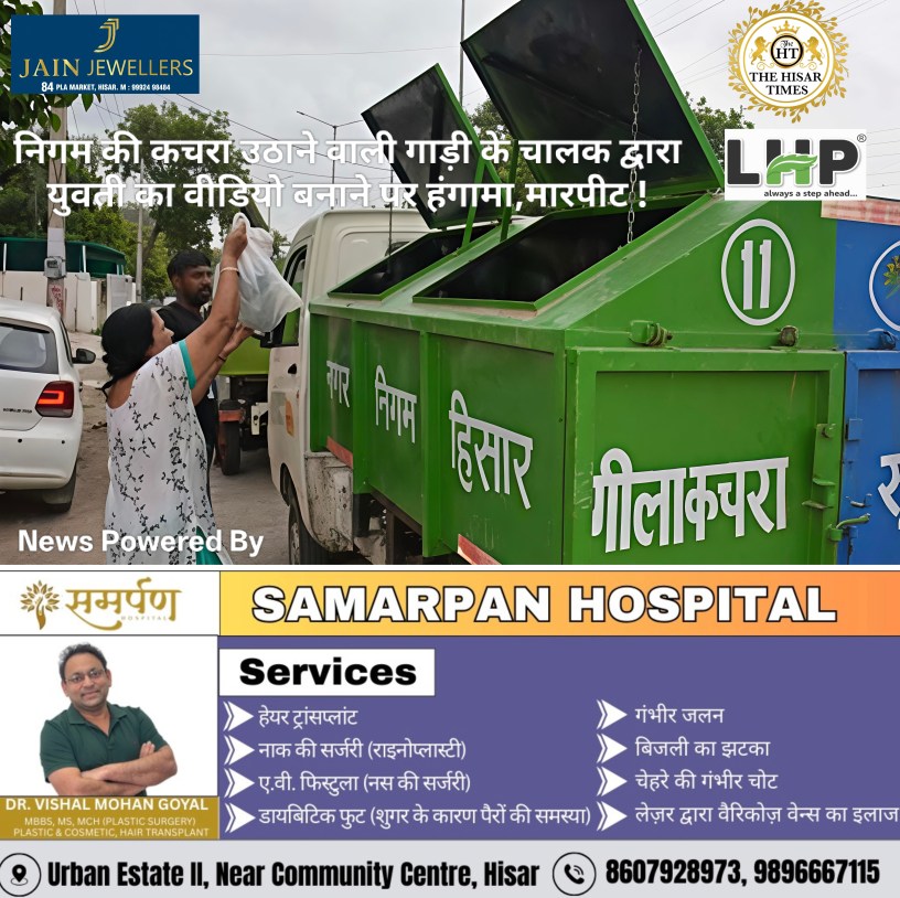 हिसार टाइम्स -हिसार शहर के सेक्टर-33 में नगर निगम की कचरा उठाने वाली गाड़ी के चालक द्वारा एक युवती का वीडियो बनाने पर हंगामा हो गया। गाड़ी चालक का कहना था कि युवती ने गीला और सूखा कचरा अलग नहीं किया था, इसलिए उसने वीडियो बनाया। इसके बाद युवती के परिजनों ने गाड़ी चालक पर वीडियो बनाने का विरोध जताया और हेल्पर पर टिप्पणी करने का आरोप लगाया। इसके बाद चालक और युवती के परिजनों के बीच हाथापाई तक हो गई।